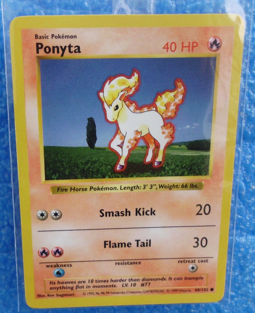Ponyta Card 60 102 Shadowless Borders Pokemon Unlimited Base Set Wizards Of The Coast Collection Series Rare Vintage 1999 Now And Then Collectibles